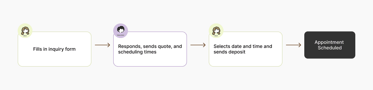 Below is the outline of what a typical tattoo booking experience would look like without Inkflow.