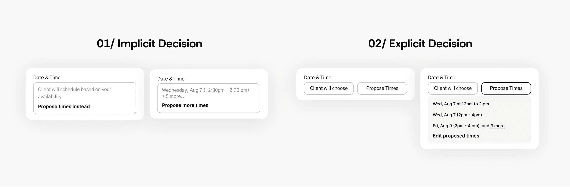 Unclear on how users will revert to client choosing a date once a propose time is selected.