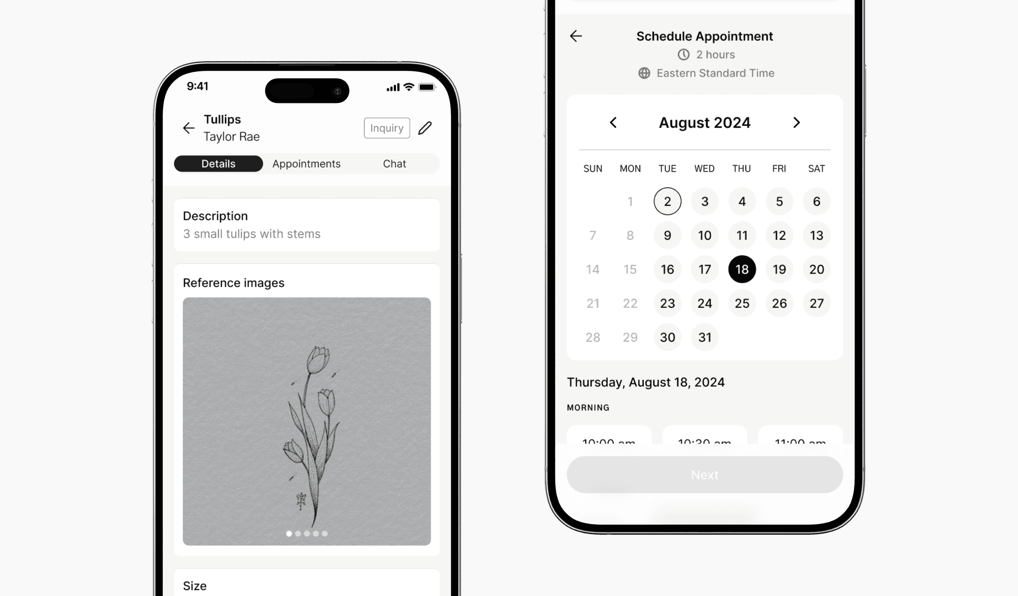 Depending on what the artist chooses, clients will have a different experience in how they choose their time and date.